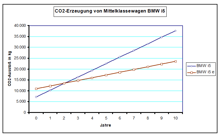 Alle Werte sind Durchschnitt der jeweils meistverkauften Version, können daher im Einzelfall erheblich abweichen (Beispiel BMW i5 als 2 Liter, 4-Zylinder, mittlere Ausstattung, oder Touring-Version 4,4 Liter, Achtzylinder, umfangreiches Zubehör). Die jeweils elektrisch angetriebene Fahrzeugvariante wird wegen des geringeren Materialaufwands für den Motor mit einem Abschlag von 10% angesetzt: