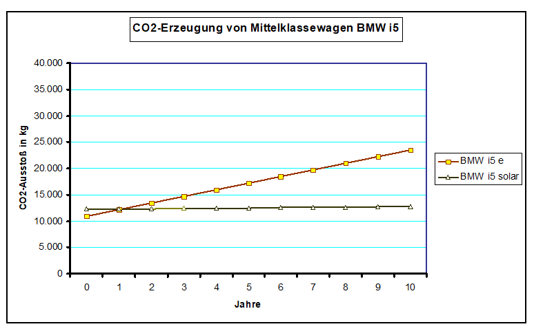 Betrachtung der Ergebnisse Es zeigt sich, dass der relativ (zur PKW- und dessen Batterieherstellung) geringe CO2-Ausstoß bei der Herstellung der Photovoltaikanlage und der Speicherbatterie bereits in einem Jahr Betrieb das PKWs eingeholt wird. Aus Sicht des Umweltschutzes eine ideale Kombination.